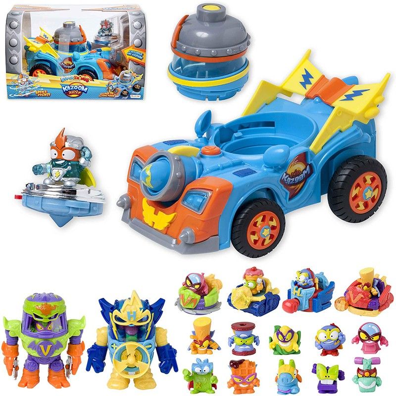 ¡Kid Kazoom y Kid Fury se enfrentan con sus nuevos vehículos! Ponlos en “modo volador” o deja que se desafíen sobre ruedas… ¡tú decides cómo continúa la aventura! Mientras sobrevuelan la ciudad, utiliza el “modo batalla”: dispara los spinners a tierra desde los vehículos o desde la cabina y deja que giren arrasando todo a su paso. ¿Quién ganará? No hay nada decidido…